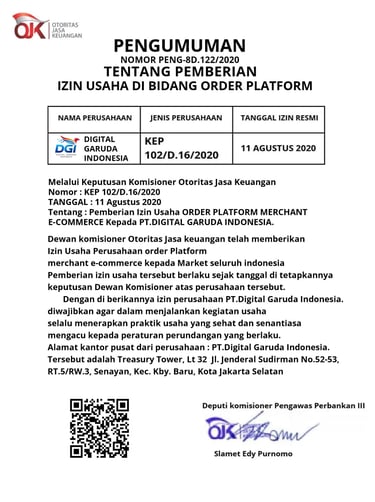Digital Garuda Indonesia (DGI) adalah perusahaan layanan digital yang berfokus pada dukungan operasional perdagangan online. Kami hadir untuk membantu pedagang online dalam mengelola aktivitas digital, meningkatkan performa toko, serta menjaga efisiensi operasional melalui sistem yang terstruktur dan profesional.